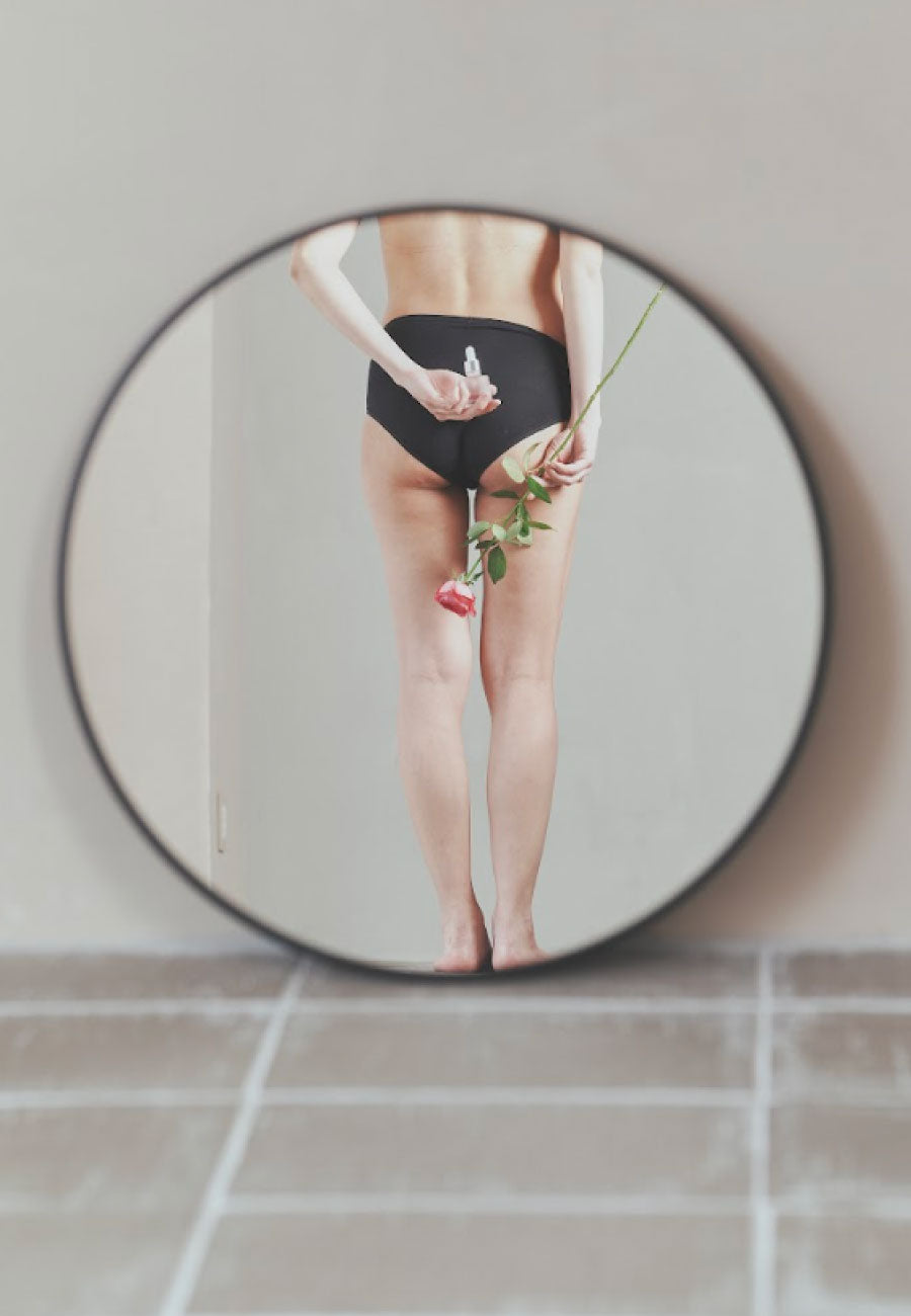 Step.5 タオルドライ後、オイルを適量手に取りデリケートゾーンに優しく塗布してください。