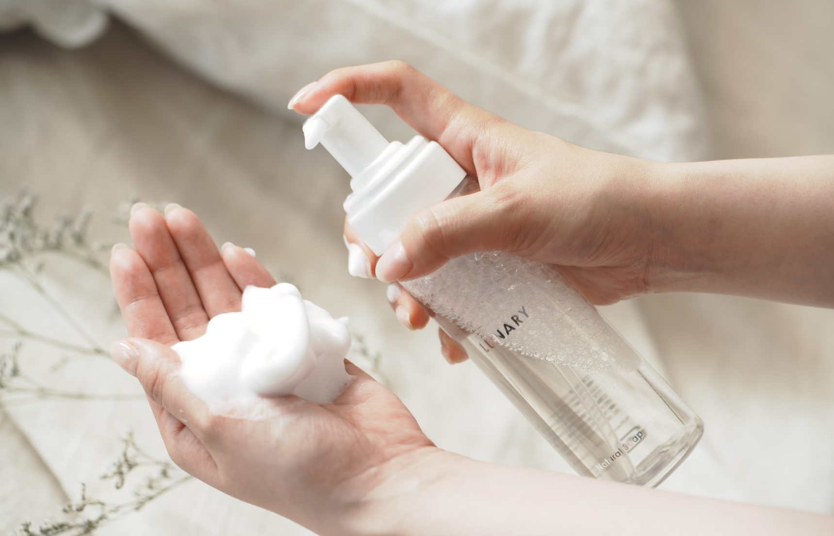 Step.2 ソープを適量(3プッシュ目安)手に取ります。