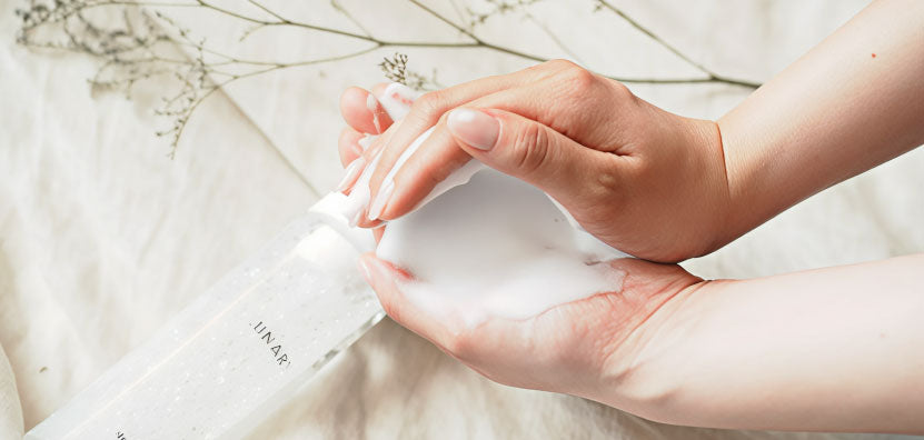 Step.2 ソープを適量(3プッシュ目安)手に取ります。